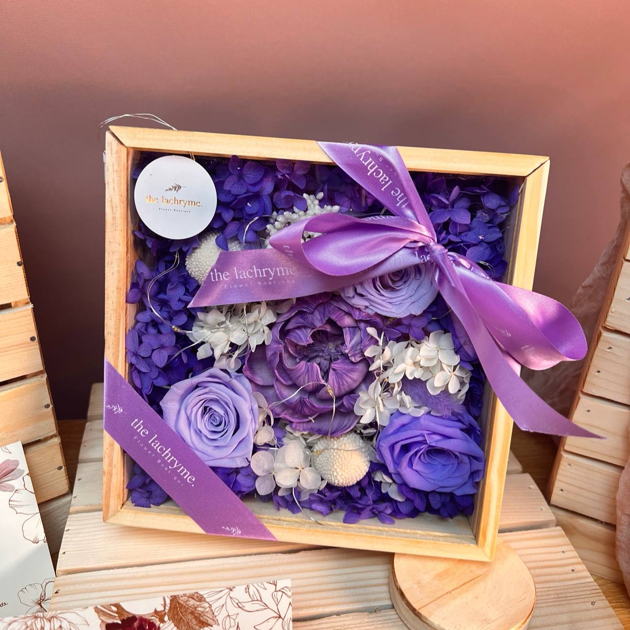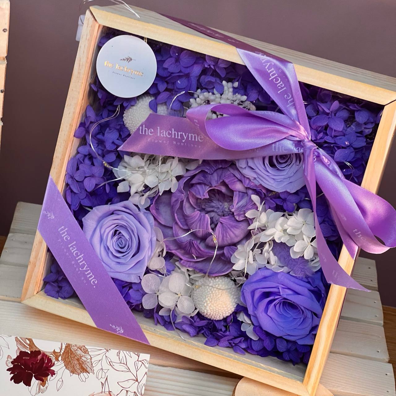 A tribute to eternal elegance. Housed within a luxurious Shadow Box, this artful composition of Eternal Preserved Roses, soft Hydrangeas, and curated dried botanicals whispers of timeless romance and delicate grandeur—an heirloom of emotion, sealed in bloom.